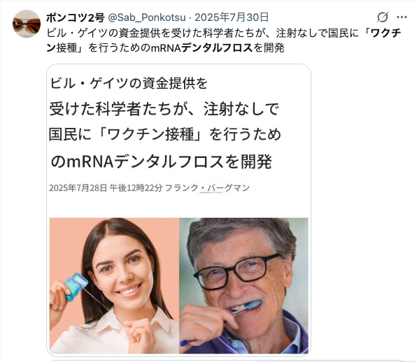 「mRNAワクチンでコーティングしたデンタルフロスト開発中」からどうぞ