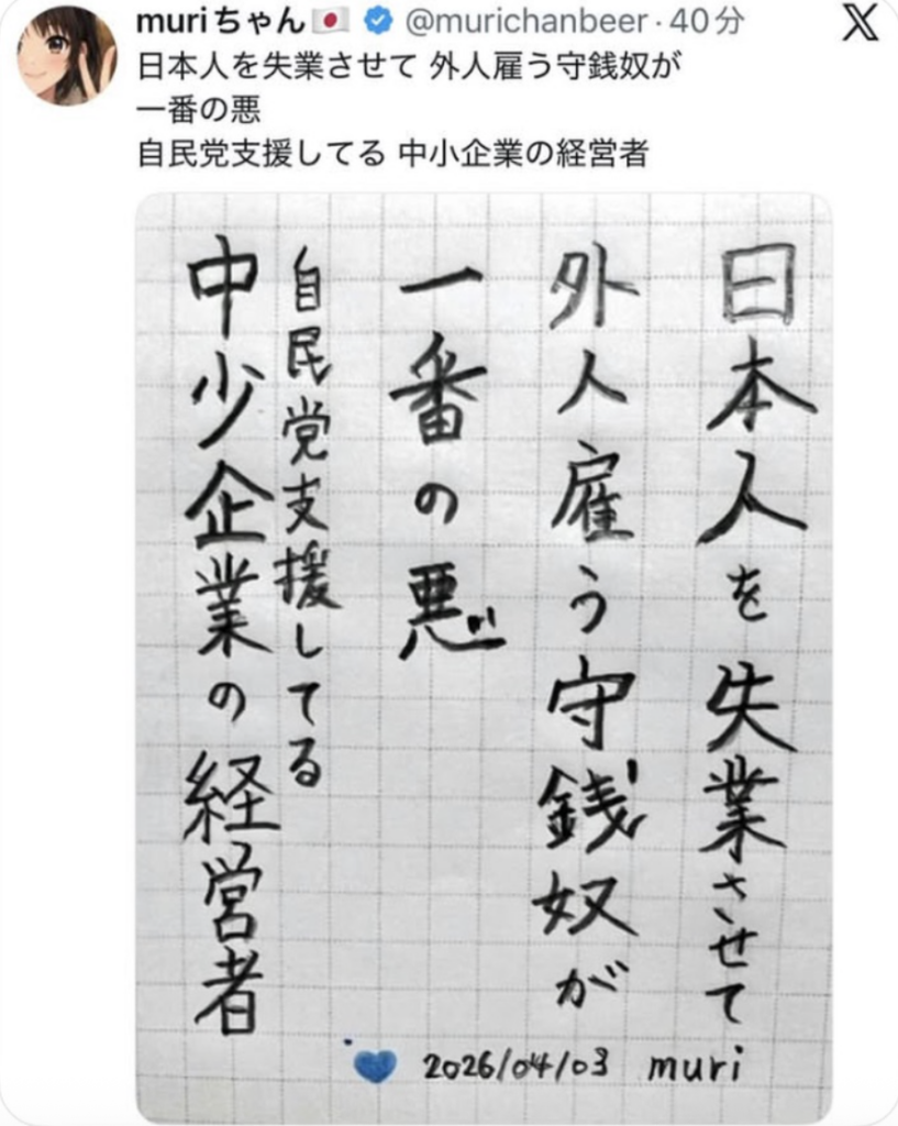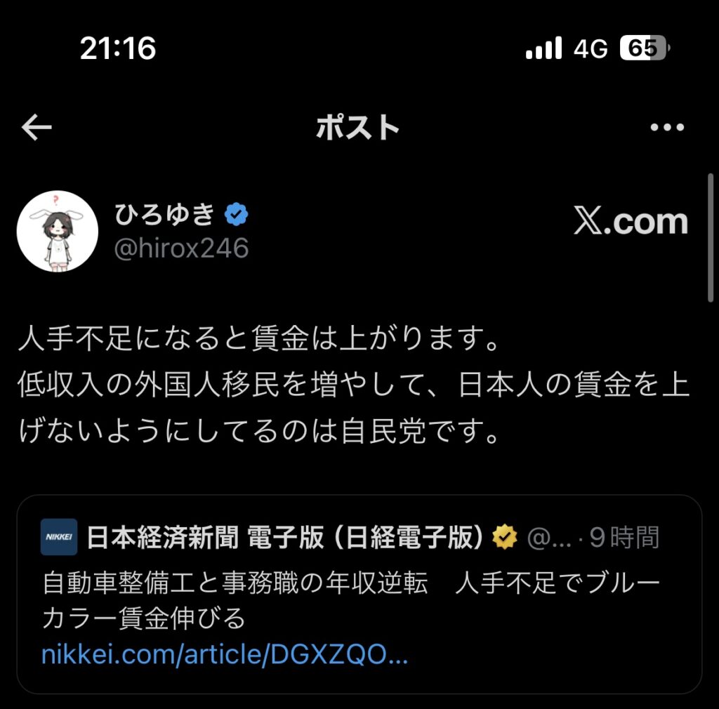 今、自民党がワザとこういう政策をとって日本人より外国人が雇用されやすい土壌を作ってるんです